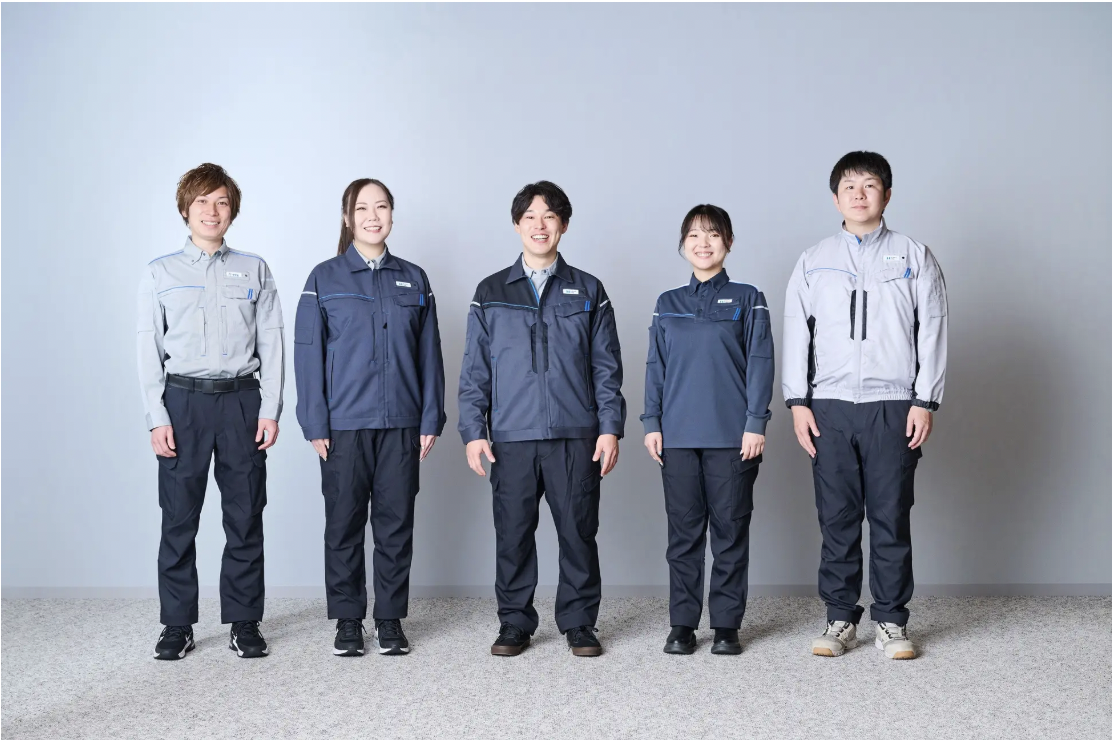 さらに、女性技術者の意見も積極的に取り入れており、生地の透け防止・胸元の隠しボタンの追加・スラックスへの女性体型向けデザインの採用など、性別を問わず働きやすいユニフォームを目指した。