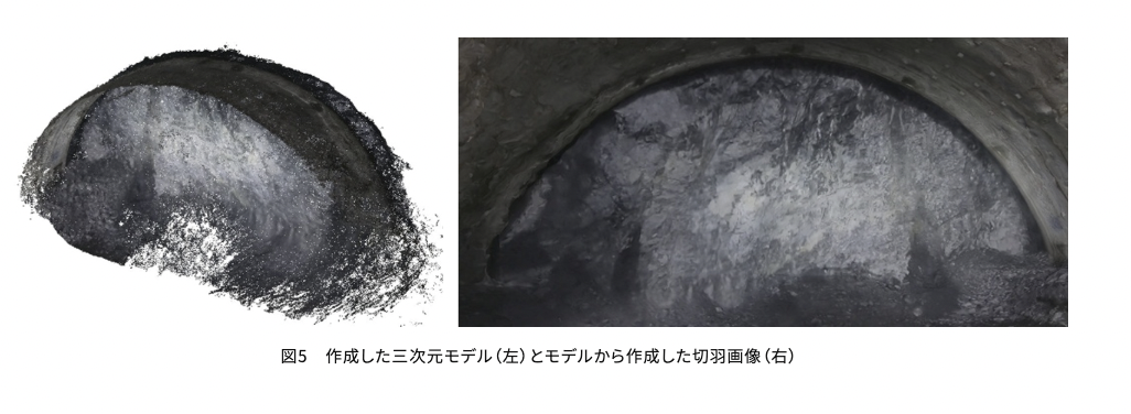 さらに生成された切羽3Dモデルから割れ目の方向性を自動抽出する機能や、AIによる切羽観察表の自動出力とも連携させ、地山評価の高度化と省力化を推進する。