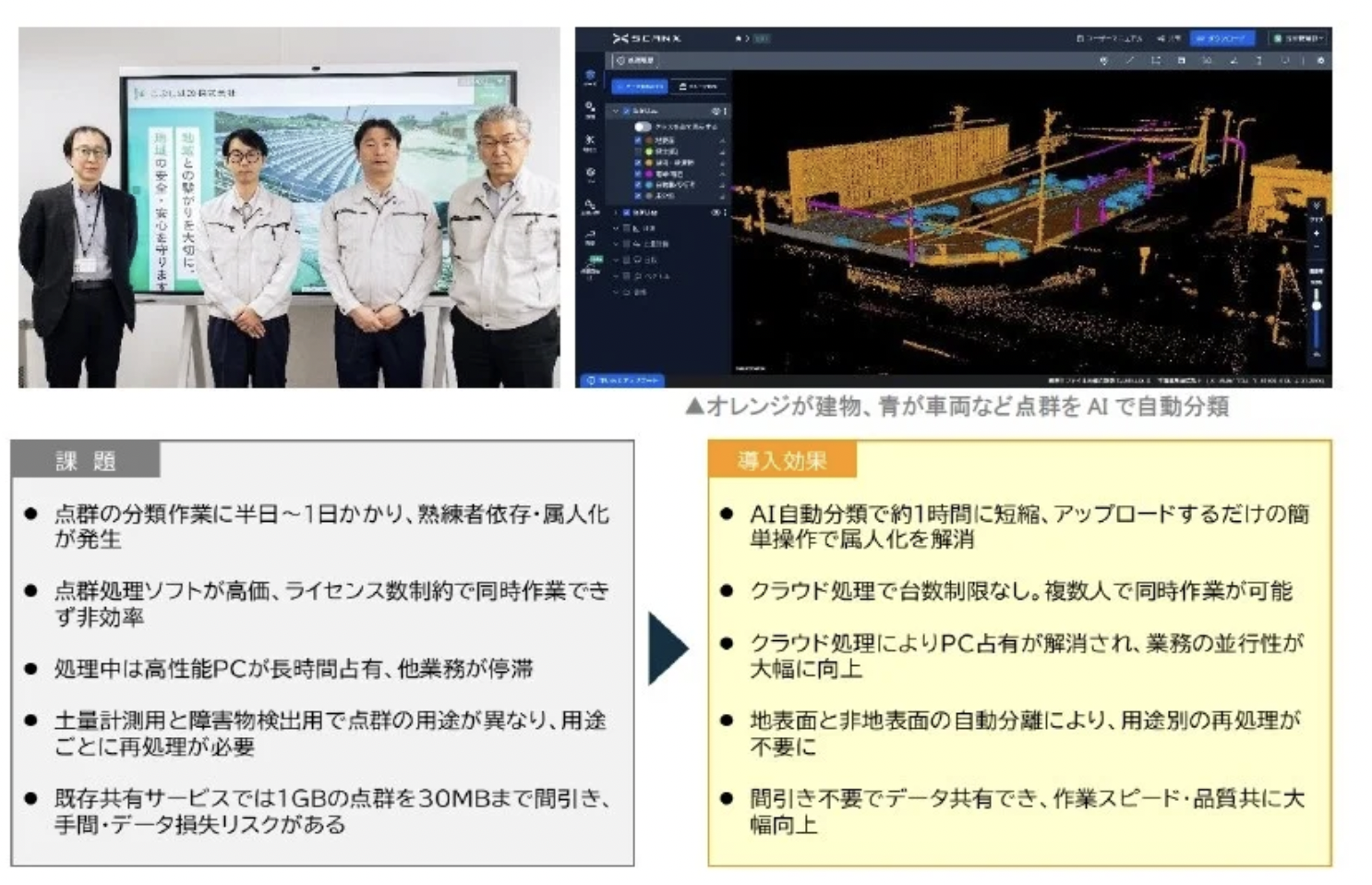 ゼンリンは2026年3月30日、グループ会社ローカスブルー株式会社が提供するAI搭載のオンライン点群処理ソフトウェア「ScanX」について、建設業4社の最新活用事例を公式ウェブサイトで公開した。