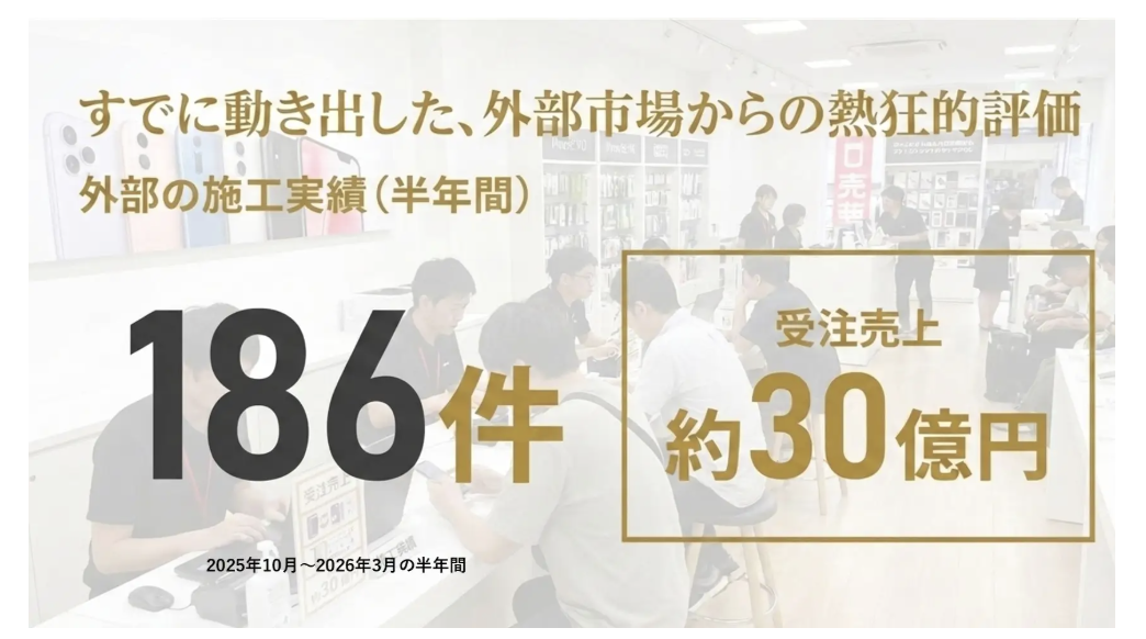すでに外部企業からも受注実績があり、2025年10月〜2026年3月の約半年間で186件を完遂している。