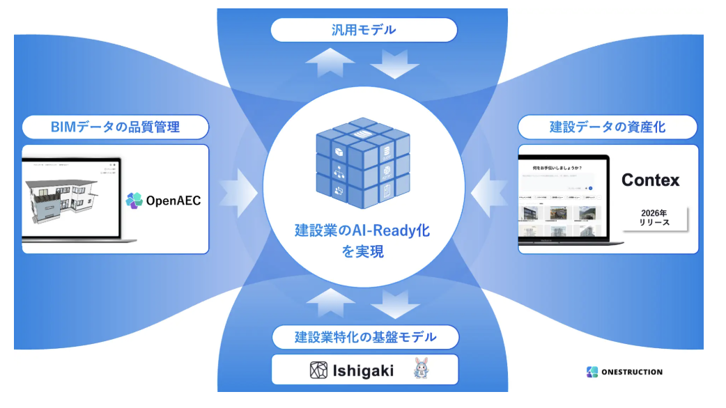 BIMデータの品質管理「OpenAEC」・建設特化AI基盤「Ishigaki」・データ資産化AI「Contex」の3本柱を拡充