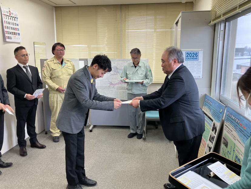 2025年7月から宮城県大崎市の江合川左岸堤防で全国初となる河川堤防での実証実験を開始し、計4回の試験施工と約3か月間のモニタリングを経て結実した受賞となる。
