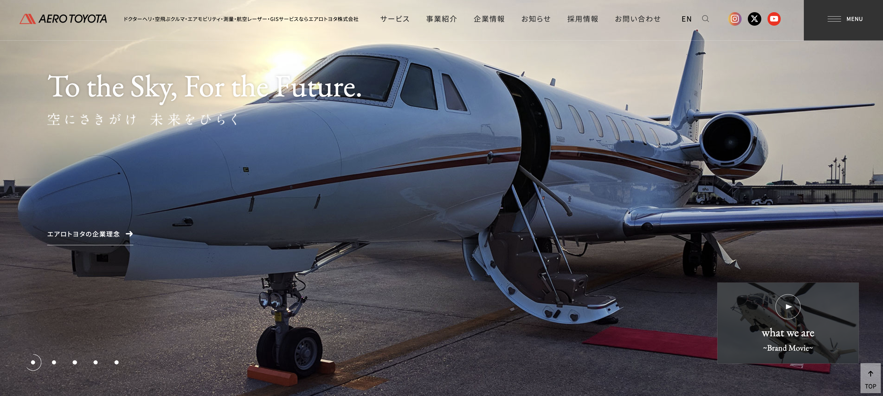 1953年設立の総合航空会社。航空事業と調査・測量事業を両輪で展開する。中部圏を地盤に、全国の道路・河川・公共施設の測量実績を積み重ねてきた。