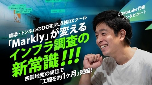 コラム・特集 DataLabs インタビュー インフラ点検 Markly 橋梁・トンネルのひび割れ点検DXツール「Markly」が変えるインフラ調査の新常識!〜 四国地整の実証で「工程を約1ヶ月」短縮!《DataLabs代表 特別インタビュー》 三浦 るり 2026.2.2