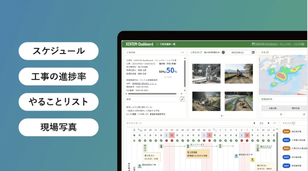 建設システムは2025年10月27日、現場の様々な情報をクラウド上のダッシュボードでリアルタイムに共有・確認することができる建設現場向けプロジェクト共有サービス「KENTEM-Dashboard」をリリースすると発表した。