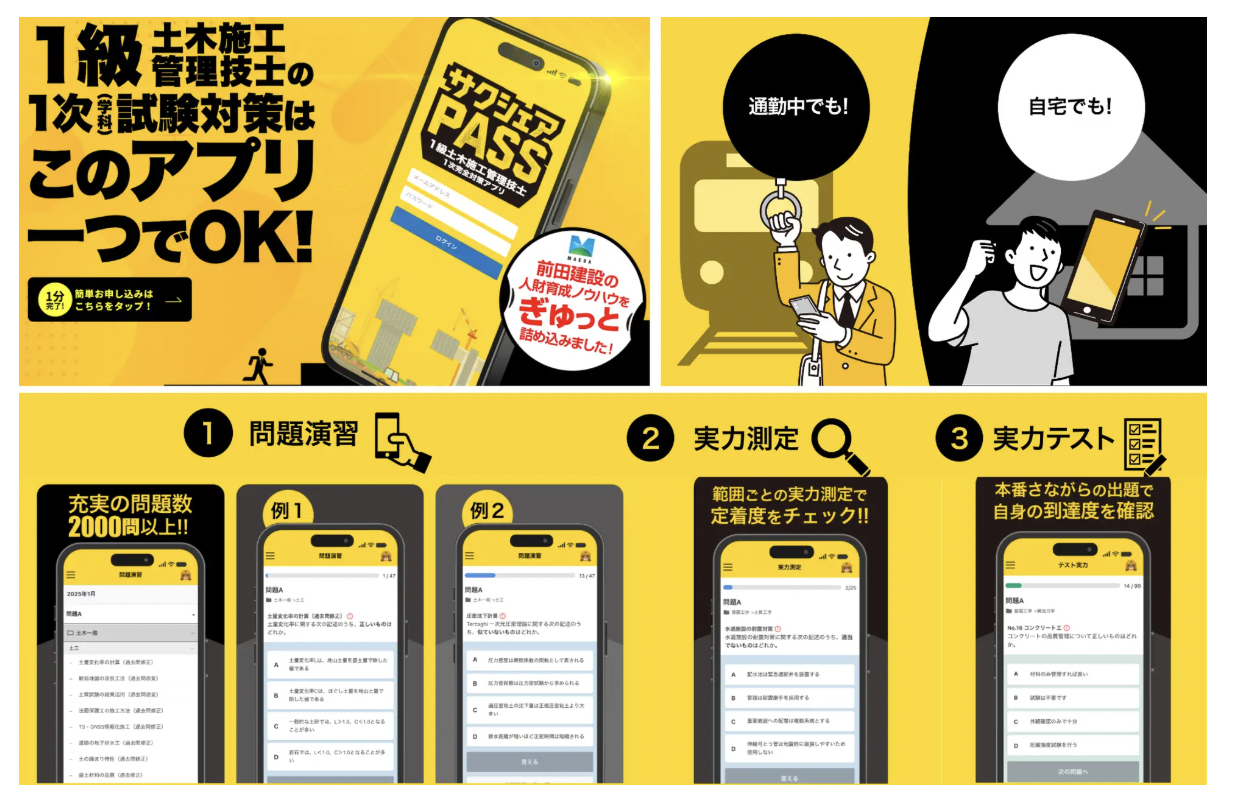 前田建設工業は、建設技術者の資格取得支援を目的とした学習アプリ「サクシェアPASS」を正式リリースすることを決定した。