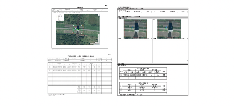 計測経路ファイルや標定点・検証点データを入力するだけで、様式に沿った成果品を自動で作成でき、煩雑さや負担を解消する。