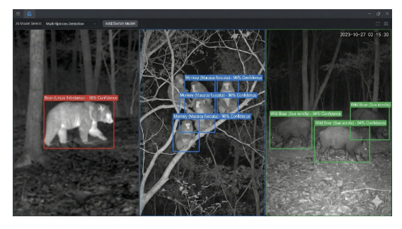 - 作業員の安全確保: 山間部の工事現場や造成地に設置することで、クマやイノシシの接近をリアルタイムに検知し、作業員への注意喚起や退避誘導を迅速に行う。