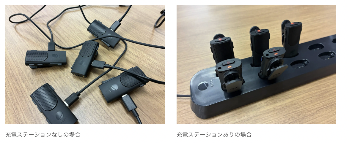 建設現場や土木工事の現場では、複数のデバイスをチームで共有・管理することが一般的だが、個別のケーブルによる充電は「配線が絡まる」「断線する」「充電し忘れる」といったトラブルの元となっていた。