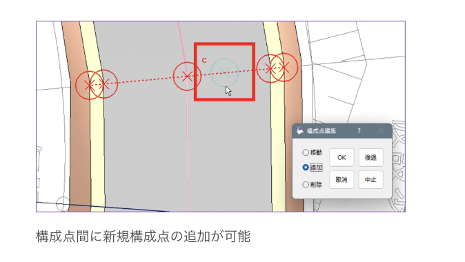具体的には、「横断変化断面の追加」コマンドが改良され、構成点の追加が外側だけでなく内側にも対応。