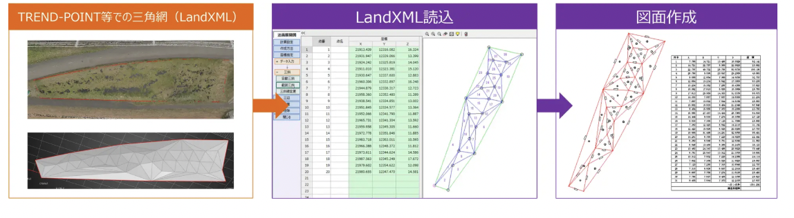 また、建設CADの「法面展開図」機能においては、LandXML(TINデータ)の読込みに対応した。