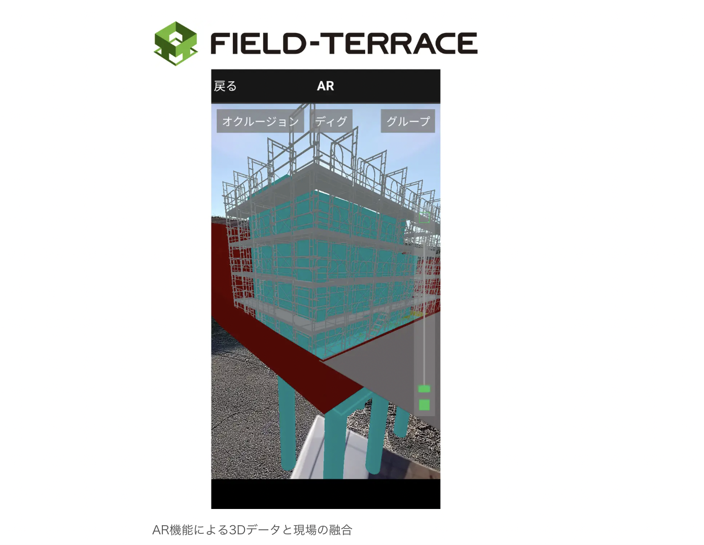 - 視覚的な誘導: 杭打ちなどの作業時、従来は数値で方向を確認していたが、AR誘導機能により、画面上の映像を見ながら直感的に目標点へ移動できるようになる。