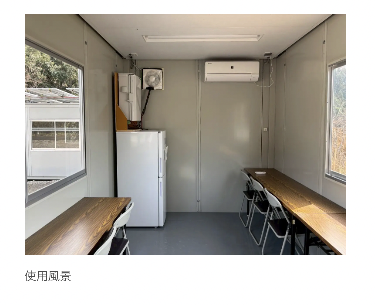 プレハブ休憩所のエアコン・冷蔵庫も稼働可能