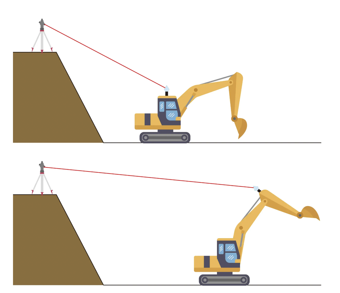 トータルステーションを用いたMG施工では、建機の旋回や人・車両の往来によってレーザーが遮られ、作業が中断することが課題だった。