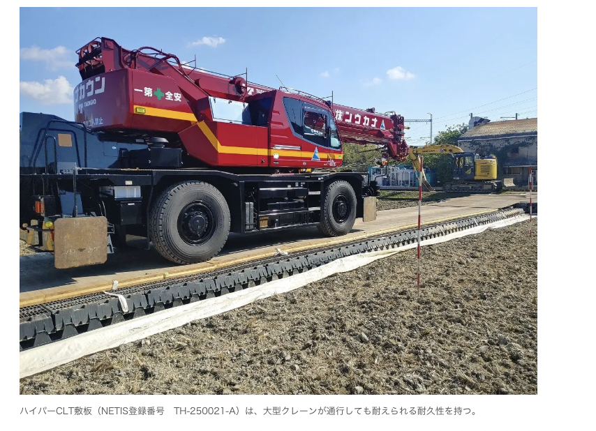 株式会社カイタク(岡山県岡山市)は2026年2月24日、国土交通省のNETIS(新技術情報提供システム)に登録された木製仮設資材「ハイパーCLT敷板(NETIS登録番号:TH-250021-A)」の全国展開を強化すると発表した。