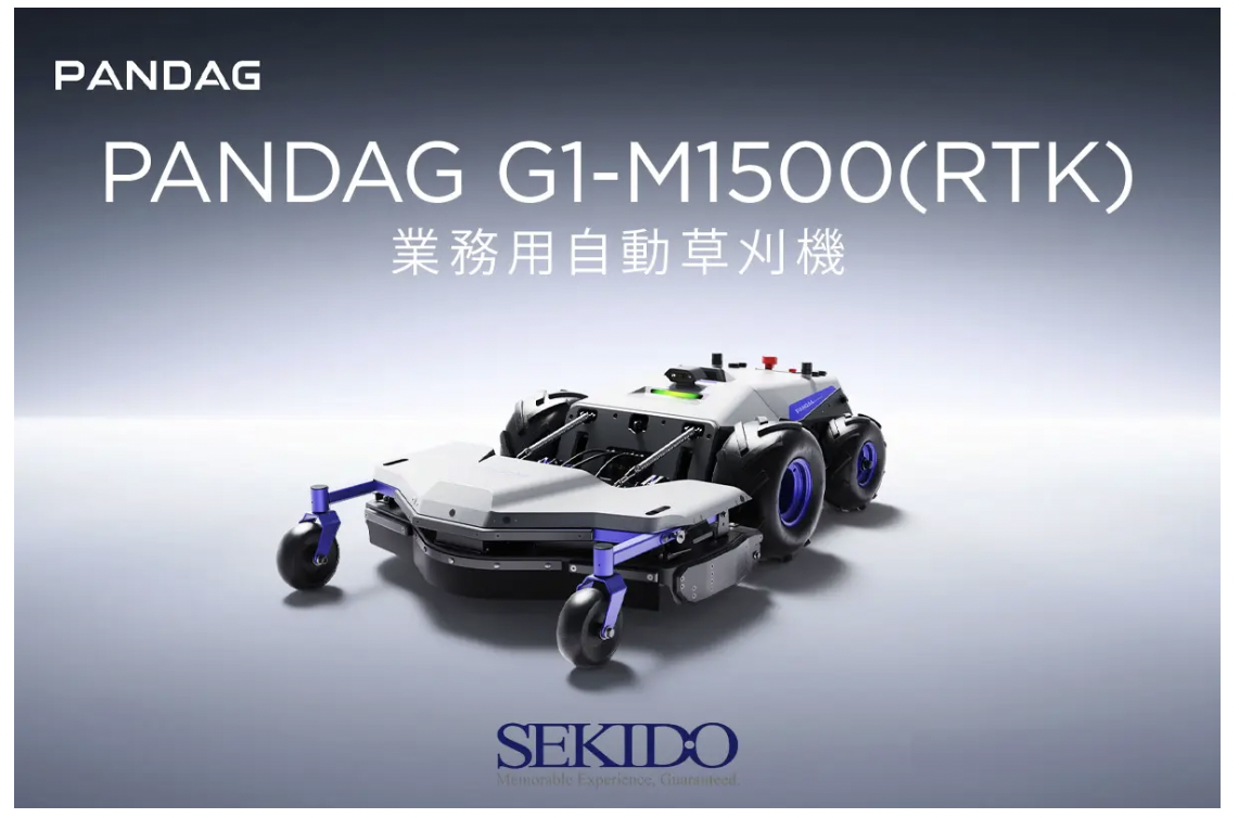 ゴルフ場・公園・河川敷・工場緑地など、広大な管理エリアの草刈作業を省人化することを目的に開発された製品で、セキドがPANDAG日本ディストリビューター・正規代理店として導入相談から運用支援、保守サポートまで一貫して提供する。