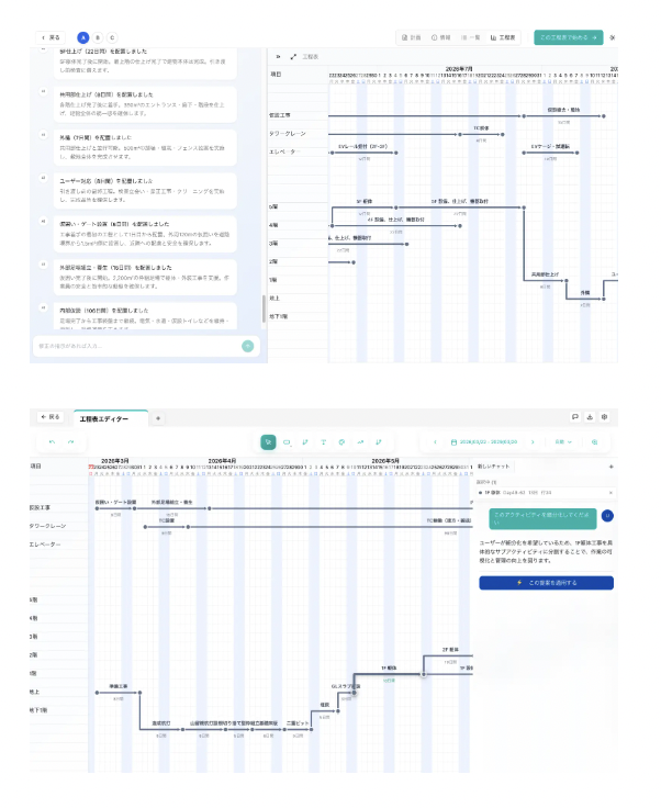 β版の利用実績では、通常1週間かかる概略工程表の作成が1日に短縮されたケースも確認されており、最短15分での全体工程表作成も実現しているという。