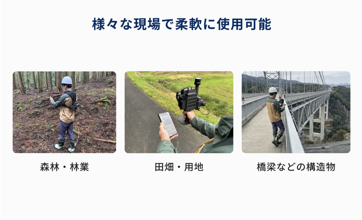 広大な森林ではバックパック、入り組んだ現場や局所的なスキャンではハンディと、現場環境に応じた柔軟な運用が可能になる。