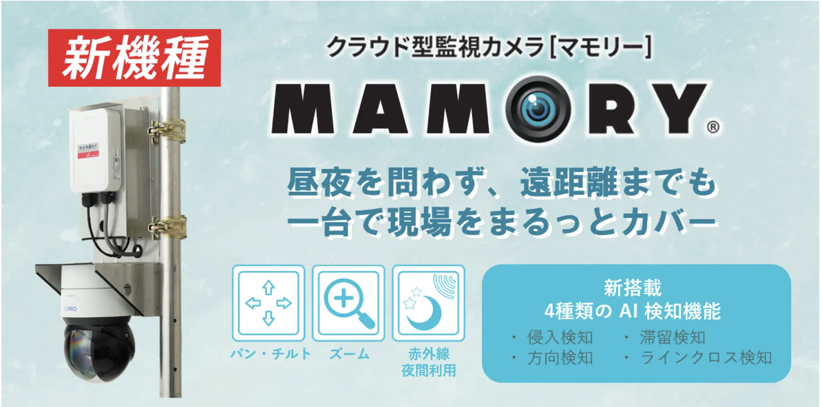 キッズウェイ(愛知県瀬戸市)は2026年4月13日、クラウド型監視カメラ「MAMORY®(マモリー)」のラインナップに、赤外線PTZ(パン・チルト・ズーム)とAI検知機能を搭載した新機種を追加した。