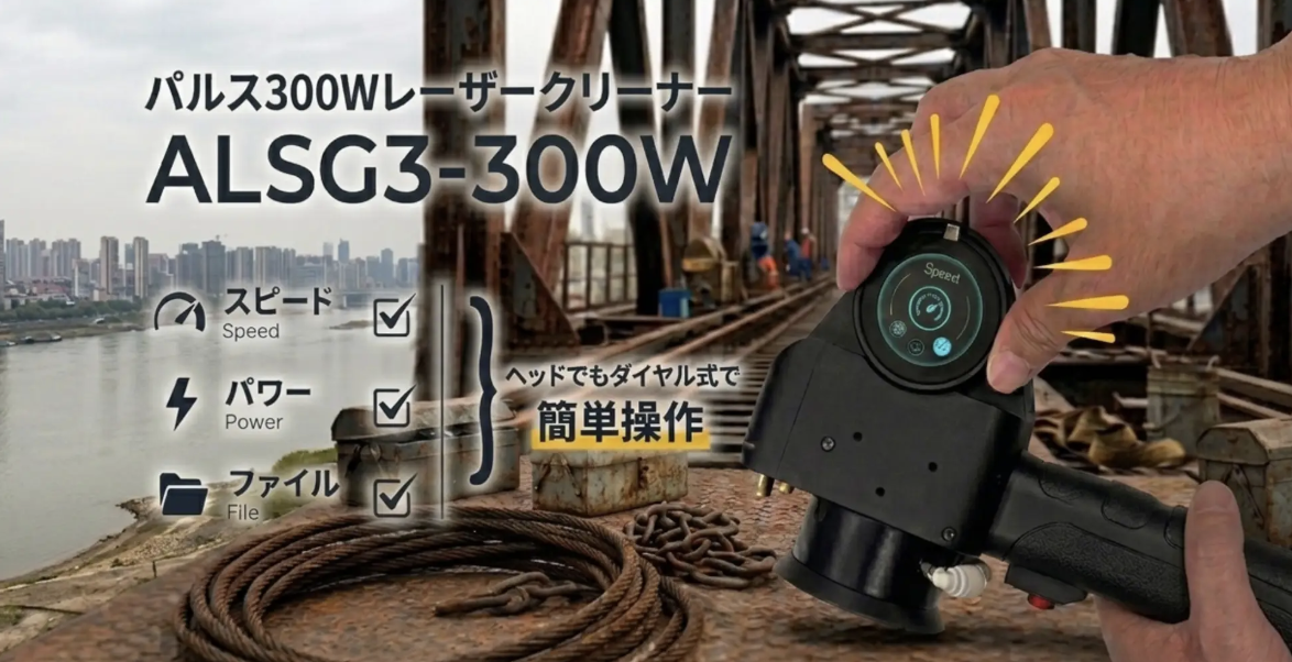 アコン(宮崎県日向市)は2026年4月10日、従来機(200W)から出力・処理速度・操作性を大幅に強化した「300Wパルスレーザークリーナー(ALSG3-300W)」をリリースした。