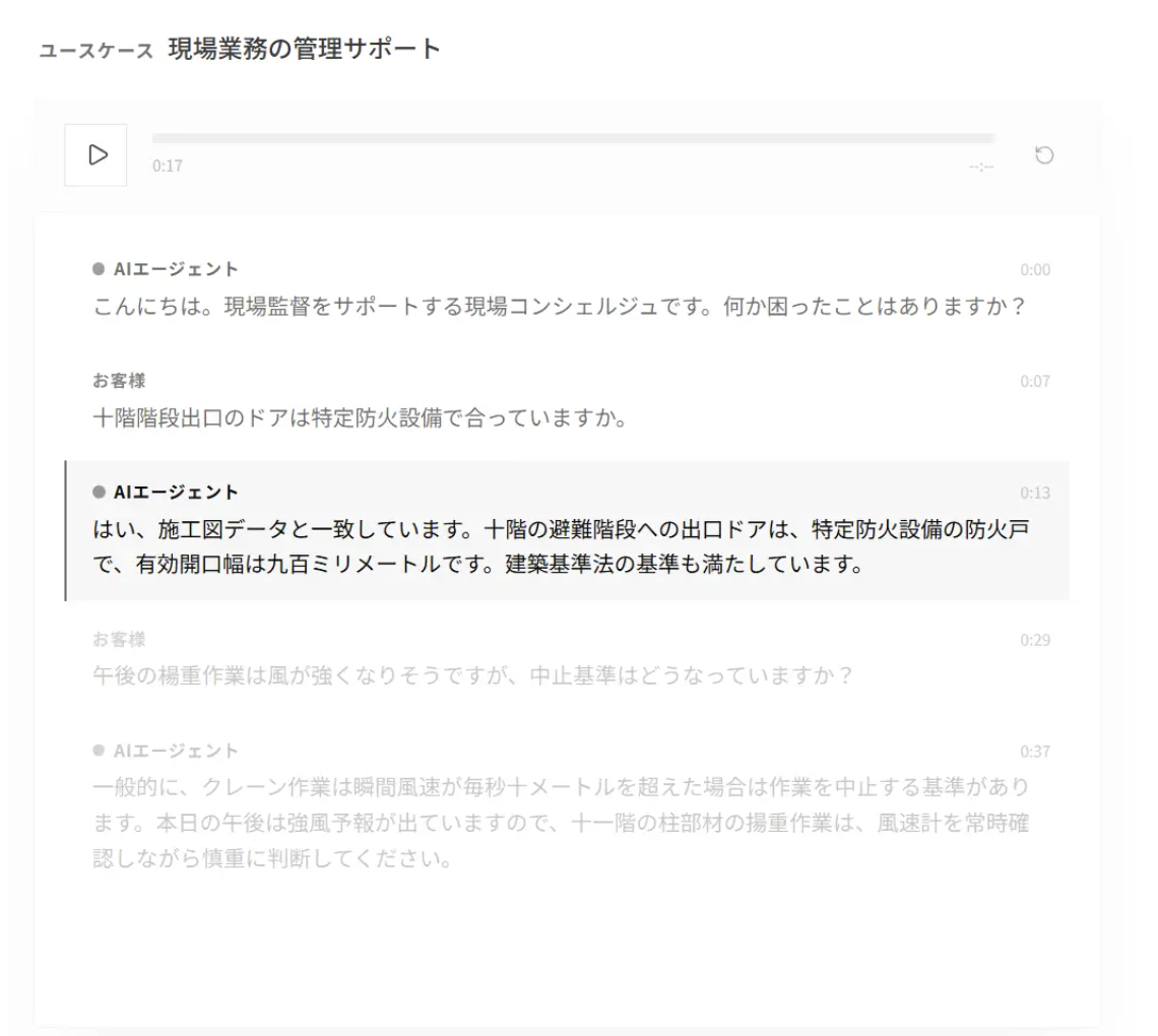 建設現場では作業中で手が塞がっている・手袋をしている・手が油や泥で汚れているといった理由でスマートフォンやPCを操作しにくい場面が多く、画面操作を前提とした従来のAIでは対応が難しかった現場特有の課題に、ハンズフリーの音声インターフェースで応える。