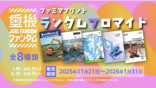 日立建機、ファミマプリントで「重機カタログ風ブロマイド」を販売開始。「建設機械の日」を記念しファン文化を拡大