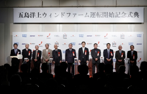 戸田建設、国内初の「浮体式洋上風力」運転開始式典を開催。長崎・五島沖に巨大風車8基が始動