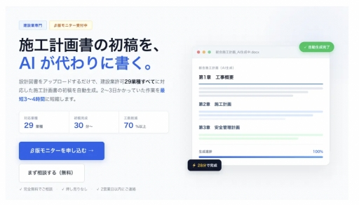 施工計画書の作成を「3日→30分」に短縮するAIを公開。全29業種に対応。NITACO社
