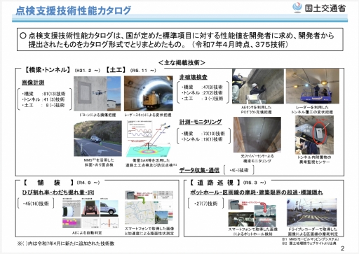 国交省が橋梁・トンネル点検支援技術を公募。性能カタログ充実で新技術活用促進