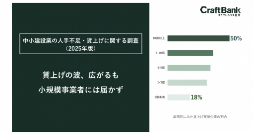 クラフトバンクが中小建設業の人手不足・賃上げ調査を実施。68%が仕事を断る実態が判明