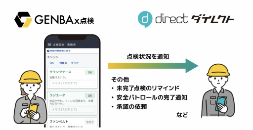SORABITO「GENBAx点検」と現場用チャットツール「direct」が連携開始。点検状況やリマインド通知をチャットで受信可能に