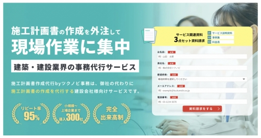 NITACO社、施工計画書作成代行サービス「施工計画書作成代行 by ツクノビ事務」の提供を開始。建設実務経験者が作成を代行
