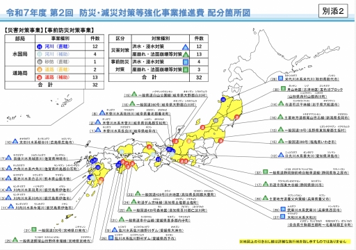 国交省が防災・減災対策に50億円配分。豪雨災害等の再度災害防止と事前防災対策に32件採択
