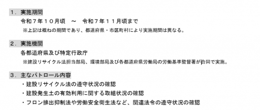 国交省。建設リサイクル全国一斉パトロールを10月実施。環境省・厚労省と連携し約5000現場を立入調査