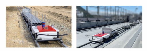 単管パイプをレールにして走る運搬ロボット。建ロボテック「運搬トモロボ T-BOX」がNETIS登録