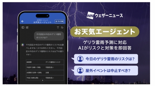 ウェザーニューズ、AIが独自データからゲリラ雷雨予測回答する「お天気エージェント」を強化。全国7.8万回の発生予想で事前対策支援