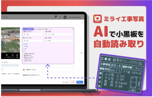 工事写真アプリ「ミライ工事」、AIによる「小黒板自動読み取り機能」を新搭載。入力作業を自動化