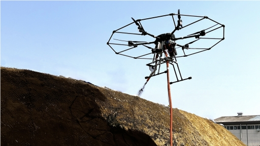 エアロセンス、国内初の法面吹付用大型有線給電ドローンと吹付工法を開発。重機不要で植生基材吹付を実現