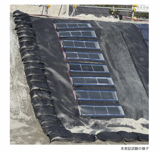 マクニカと奥村組、遮水シート一体型ペロブスカイト太陽電池の実証試験を開始。未活用の法面を再エネ供給地へ