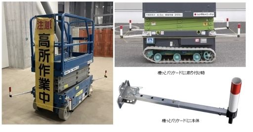レンタルのニッケンら、高所作業車用の「柵っとバリケードミニ」を開発。マグネットで装着、移動の手間を解消