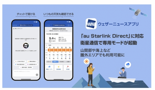 ウェザーニューズ、iOS版アプリが「au Starlink Direct」に対応。圏外の山間部や海上でも気象情報の取得が可能に