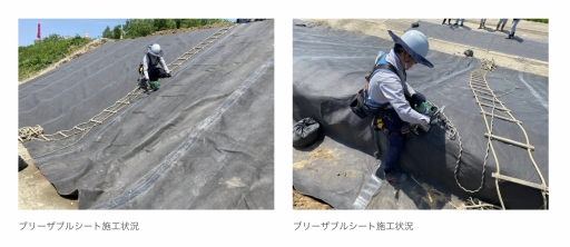 太陽工業、水は防ぎ空気を通す「ブリーザブルシート」を河川復旧工事で全国初採用。堤防の耐久性を向上